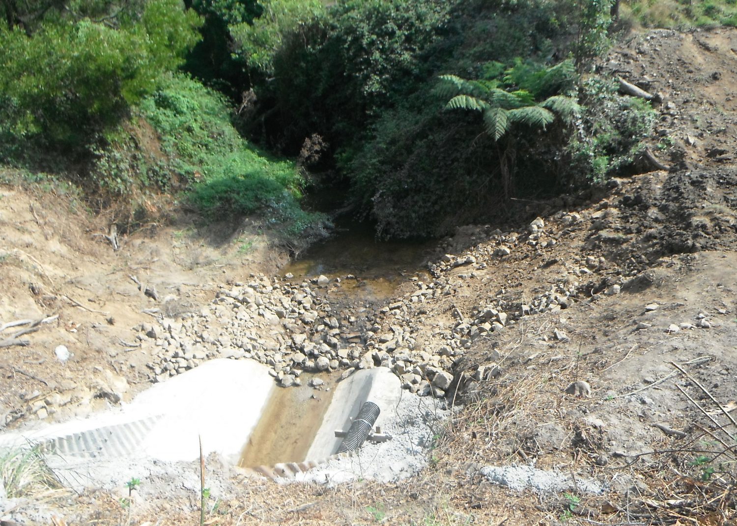 This project comprised of relining the invert in 40 metre long corrugated metal road culvert.  The existing corrugated metal invert was highly corroded and deteriorated. The works included removal of the existing culvert invert and installing a reinforced concrete lining.